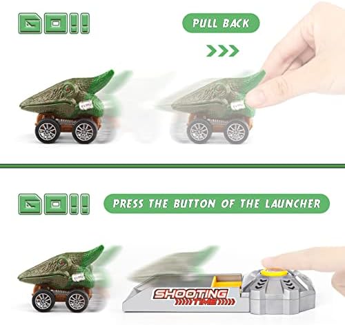 Dinosaur cars to pull back: There are 3 monster cars to pull back, just pull back and then release your hand. Your little ones can also play them with a launcher or a cool removable track, which is very attractive for children.