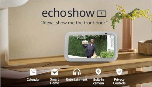 SEE MORE WITH THE BUILT-IN CAMERA – Check in on your family, pets and more using the built-in camera. Drop in on your home when you're out or view the front door from your Echo Show 5 with compatible video doorbells.
