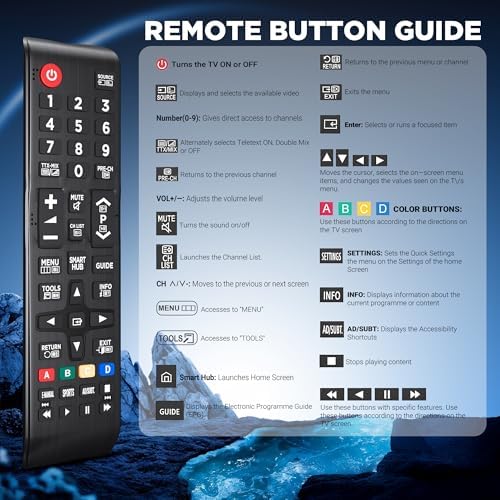 ππππππππππππ: This Samsung smart TV remote control offers excellent transmission range and stable performance. It replaces your old or broken remote and covers all the original functions, making it a dependable replacement Samsung TV remote. Perfect for everyday use as a TV remote Samsung, remote control TV, or remote control for TV, it also functions as a trusted Samsung replacement remote control, TV controller universal, or replacement TV remote.