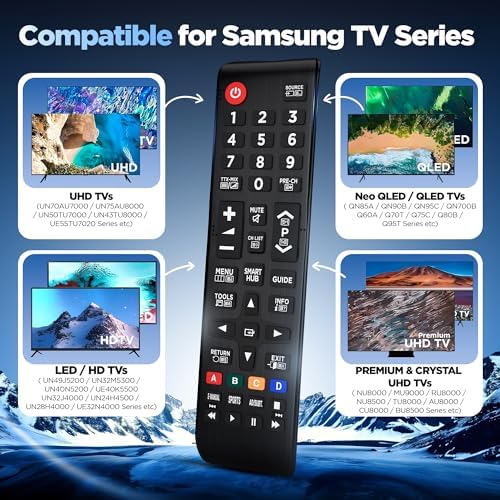 β οΈ ππππππππππ β€ This is a universal TV remote replacement compatible with Samsung TVs. It is not an original Samsung product, nor is it manufactured or endorsed by Samsung. All brand names, model numbers, and trademarks are used strictly for compatibility and reference purposes only.
