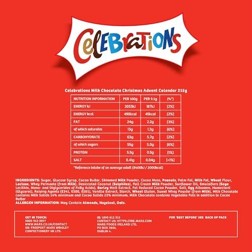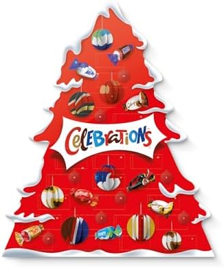 1x 215g Celebrations Chocolate Advent Calendar. A holiday chocolate gift box suitable for Vegetarians