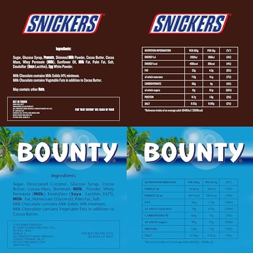 1 x Chocolate Bulk Bag of 71 - Fun-size Chocolate bars, including Snickers 14 x 18g, Twix 19 x 20g, Bounty 12 x 28.5g, MilkyWay 12 x 15.5g and Mars 15 x 18g. Total of 1.4kg!