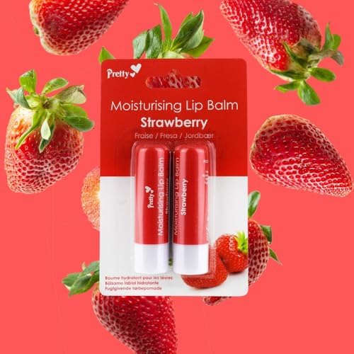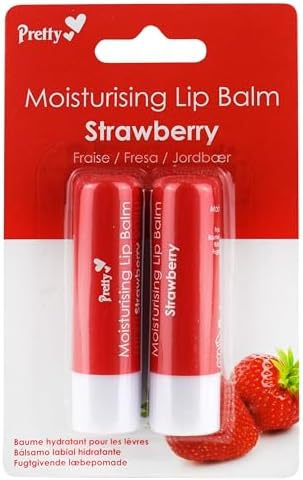 This twin-pack of Pretty Strawberry Moisturising Lip Balm contains 2-Pieces, ideal for one on your desk and the other to-go.