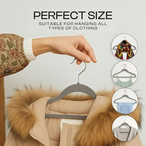 SLIM DESIGN - These stylish 360-degree rotating velvet coat hangers add sophistication to your wardrobe, and the slim design ensures a neat and minimalist look.