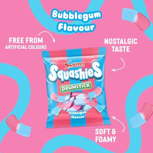 Chewy Bubblegum Flavour: Experience the classic bubblegum taste in a new, squashie sweet. Each 140g bag is filled with moreish sweets, ideal for sharing or savouring alone. A childhood favourite reimagined for all ages to enjoy.
