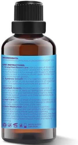 MULTIPURPOSE ROSEMARY ESSENTIAL OIL--Our 100% pure rosemary essential oil can be wildly used to promote relaxation.Used in DIY skincare recipes such as facial cleansers,toners, and moisturizers to help cleanse and rejuvenate the skin.Mixed with carrier oil to stimulate hair growth, improve scalp health,and prevent dandruff.Diluted with a carrier oil and massage it onto body to snoothing.