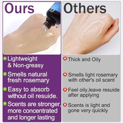 Lightweight,Non-Greasy,Undiluted, 100% PURE & NATURAL ROSEMARY OIL-- GIFBEA rosemary essential oil is a single-ingredient product. No synthetic additives,No Added-Fragrance and Not Diluted.Many oils being sold make that claim but are in fact made of natural isolates and mixtures,and they are thick with oily texture.But acturally,100% Pure rosemary essential oil is thin with non-greasy texture and smells fresh natural rosemary.GIFBEA rosemary essential oils are exactly that!