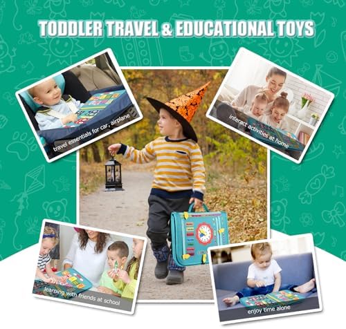 đăPortable Toddler Travel Toy, Enjoying A Quiet And Busy JourneyăCompact design makes it easy to put quiet books in a backpack. With handle and a extral strap, the sensory toys are very portable and can be carried by hand, single shoulder, crossbody. Great toddlers travel toy for plane car journey, providing fun for toddlers, so that they will no longer be bored and keep quiet during the journey. The montessori busy board can also keep toddlers away from the screen and protect their eyes.