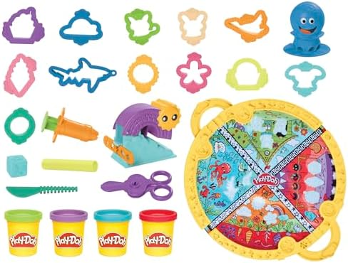 GET CREATIVE WITH 19 PLAY-DOH TOOLS: Make silly faces, wiggly octopus legs, fun animal shapes or anything else they imagine with the Fun Factory tool, 4-sided face stamper, 12 cutters, Play-Doh scissors and more creative toys