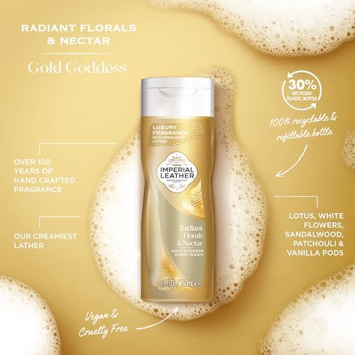 GOLD GODDESS BODY WASH: This Radiant Florals and Nectar Imperial Leather body wash has a creamy lather, leaving skin soft and clean