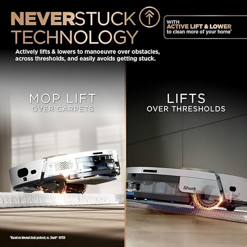 Enhanced cleaning coverage with NeverStuck Technology: Lifts and lowers the device over thresholds, obstacles, bumps, thick carpets and more