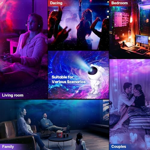 [Unique Standing Astronaut Design] With its innovative standing astronaut design, this astronaut projector offers a full 360-degree rotation. The LED lights with room motifs for the bedroom allow easy adjustment of the projection angle of the mist with the magnetic head connection. In addition, the movable arms give the projector a stylish touch and make it not only a star projector, but also a decorative element.