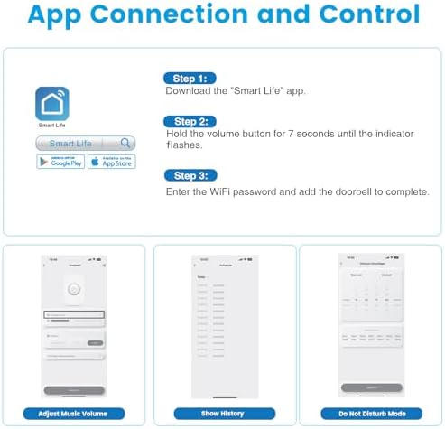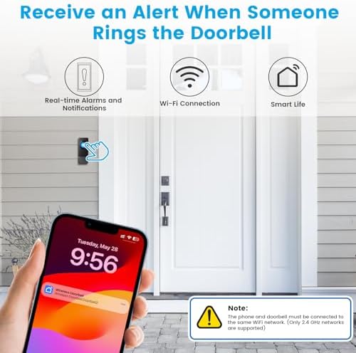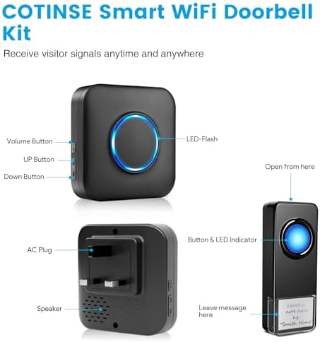 đź””Supports Mobile Remote Notifications - This is the latest WiFi doorbell from COTINSE, enabling remote notifications via WiFi. (The receiver must be within the WiFi range.) Enjoy free features no subscription required, including melody selection, volume adjustment, access to the event history via the app.(Only supports 2.4GHz networks)