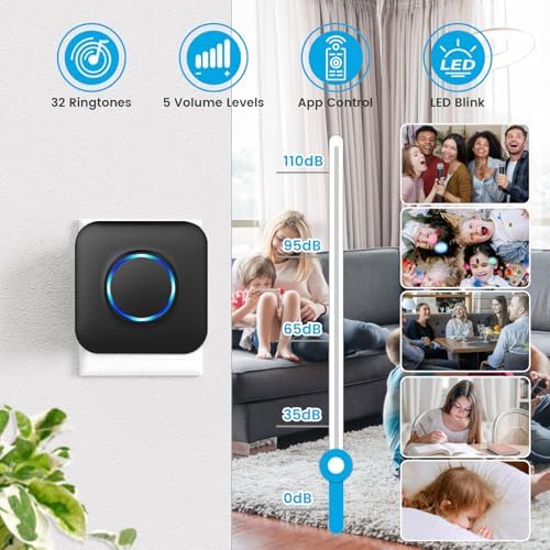 🔔Silent Mode & LED Light Indicator - The volume of the app-enabled door bells wireless ranges from 0 to 110 dB and can be adjusted in five levels, including the silent mode. In silent mode, your child's child’s rest remains undisturbed, while you will still be notified of visitors through LED lights.