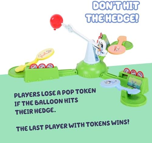 Bluey Keepy Uppy Game! A fun battery operated action game! Keep the motorized balloon in the air by bopping it with the paddles. The last player with balloon tokens wins! 2-3 Players. Ages 4+