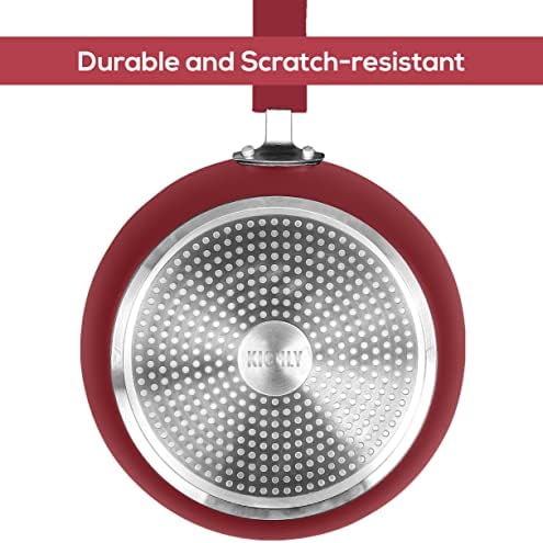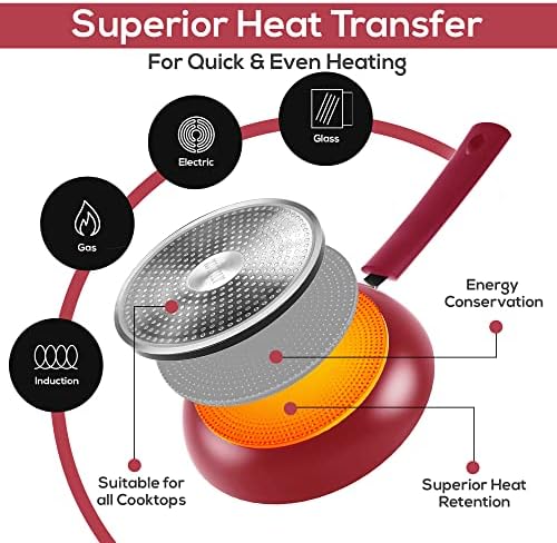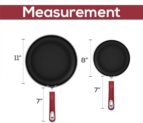 The small and large frying pan have high quality double coated nonstick interior which allows for easier cooking and cleanup. Our non stick frying pan set are PFOA, lead and Cadmium-free.