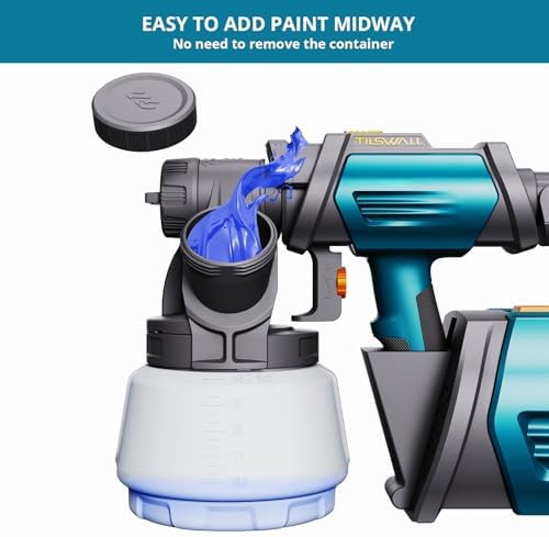 【Innovative Side Feed】The Tilswall Shark 800W paint sprayer improves the way you add paint. You can easily add paint from the side without turning the paint can, so you can make the most of every drop of paint easily and efficiently