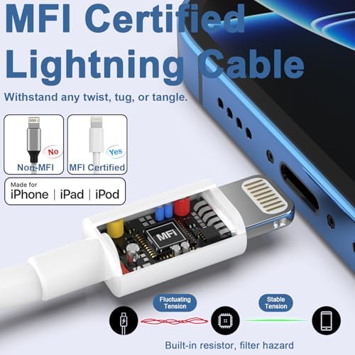 šćSafety and Reliableć This fast apple charger with strong and fire protection ABS+PC shell, ensuring that your digital device always charges safely. And built-in multiple protections, maximizing the battery life. The smart chip in the cable match the current required by the device automatically, ensuring safer and more stable charging.