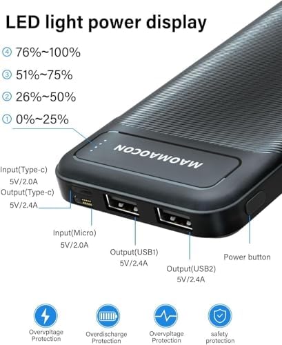 【Small & Slim】These power banks are popular for travel since they are exceptionally tiny for a 10600mAh power bank, weighing just 220g and measuring only 12mm thick. They come in handy on any road trip, allowing you to take them with you wherever you go