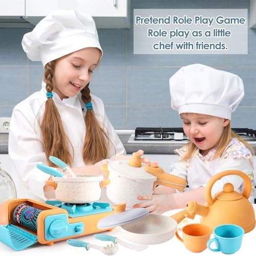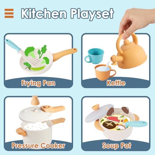 Perfect Gifts for Kids: This cookware playset not only immerses children in cooking games, but also develops their hands-on skills, imagination and social skills. An ideal gifts for 3 4 5 years old kids boys girls toddlers.
