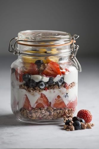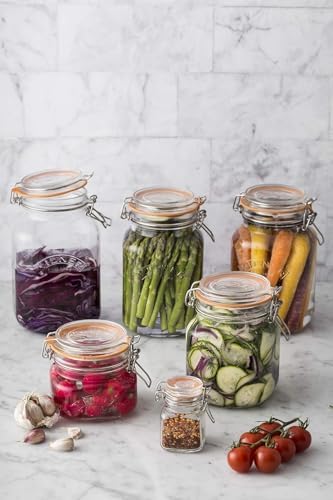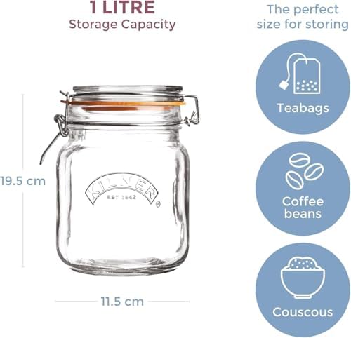 SIZE | With a capacity of 1 Litre / 1000 ml this jar is the ideal size for pickling large vegetables, preserving whole fruits and storing dry foods like flour, pasta and lentils, featuring a high-grade stainless steel clip system, engineered to create the ideal tension providing an airtight and secure seal