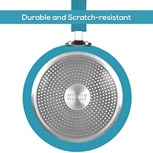KICHLY Set of 2 Nonstick Induction Frying Pans, 20 and 28 cm Induction Hob Set, Bakelite Handles Firm Grip, Easy Cleaning (Turquoise)