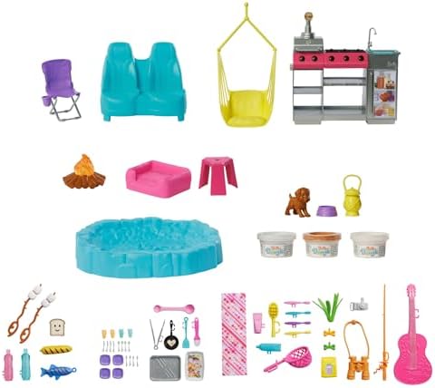 Kids can set up camp with the fishing pond, swing chair, picnic table, barbeque station, and more -- don't forget the pet bed.