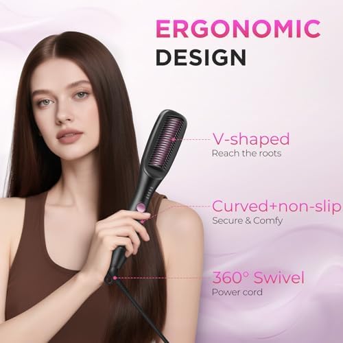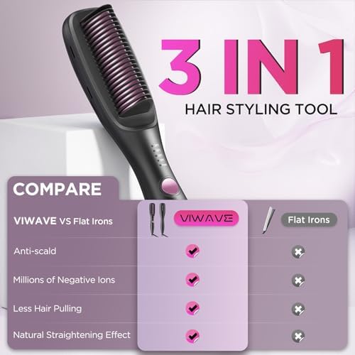 Encrypted Teeth, Straighten in One Step:The VIWAVE Hair Straightener Brush features 3D patented teeth with an upgraded triangular and curved design that reaches deeper into the hair roots than ordinary straightening brushes. The dense tooth layout increases grip, allowing you to smooth and style your hair more efficiently while achieving salon-quality results at home.