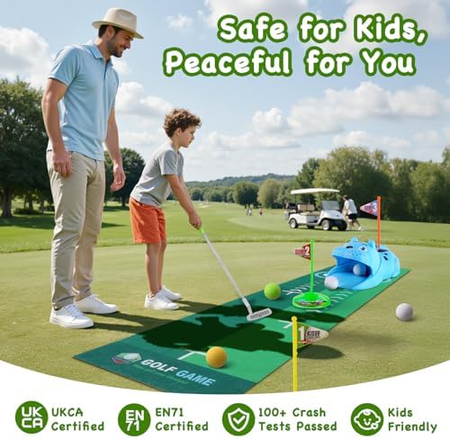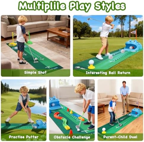 【Strengthen Family Bonds】Transform any room into your family’s personal putting green with the included 41.14inch mat. It’s a wonderful way for parents to teach the fundamentals of golf, like the proper grip, while siblings can invent their own fun golf games. Create cherished memories together through a little friendly competition.