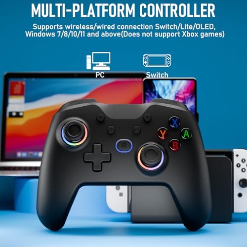 💡Cool RGB Light & 7 Colors & 3 Modes: The Switch controller has cool style RGB light, 7 bright colors, adding a sense of futuristic technology and providing immersive Gaming Experience in dim environments. 3 light modes: Solid LED lights, Breath LED light and RGB LED off model. You can choose different lighting modes and brightness (40%-60%-80%-100%) to customize your gaming experience and immerse yourself deeply in the gaming experience.