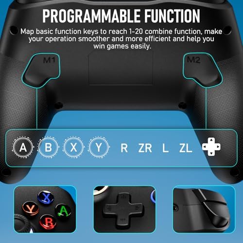 🎮【CUSTOM BUTTONS & ADJUSTABLE TURBO FOR ALL MUTIL-PLATFORM】M1/M2 back buttons can map basic function keys of A/B/X/Y/L/ZL/R/ZR/L3/R3/D-pad keys to reach 1-16 combine function keys, to meet all your need in different game to improve game experience. Support Auto TURBO/Manual TURBO mode. You can set TURBO+A/B/X/Y/L/R/ZL/ZR to meet your need. There are 3 adjustable speeds: 5shots/s, 12 shots/s and 20 shots/s. It will help you release all complex skills in time, avoid finger fatigue.