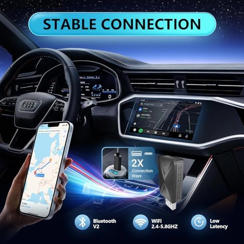 【Superior Stability & Performance】Our wireless Apple CarPlay adapter features a cutting-edge chip and anti-interference technology for smooth, uninterrupted signal transmission. Whether on rough roads or long trips, this Apple CarPlay wireless adapter ensures a stable connection with no drops or delays. Perfect for UK drivers seeking reliability!