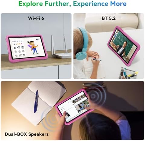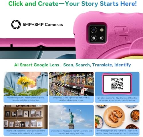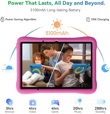 🌟【5100mAh Large Battery, All-Day Power】Equipped with a large 5100mAh battery and system-level power optimization, this kids tablets 6-12years supports all-day continuous use of learning apps, online videos, and camera functions. It saves parents the trouble of frequent charging.