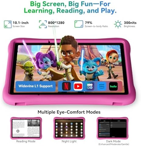 🌟【10.1-inch Eye-Care Display with Triple Eye Care Modes to Protect Children's Vision】 The OSCAL 10 Inch Tablet features a 800×1280 HD+ IPS screen, delivering clear, soft, large-screen visuals and an optimal viewing experience for children. This kids ipad supports three eye-care modes—Reading, Night, and Dark—to effectively reduce blue light and glare. Whether watching cartoons or reading picture books, children can enjoy extended periods of comfortable use while cultivating healthy screen habits and alleviating parental concerns about their children's vision.