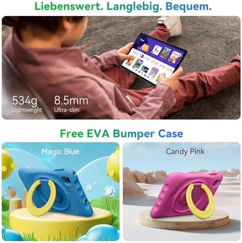 🌟【Kid-Safe EVA Case with Built-in Kickstand — Shockproof Protection for Safer Use】This toddler tablet is equiped with Kid-Safe EVA Case,which is made of lightweight, flexible, and highly shock-absorbing material to effectively cushion drops and protect both the tablet and children. It's non-toxic, odorless, and skin-friendly, making it comfortable to wear for extended periods. The built-in hidden kickstand allows children to enjoy hands-free learning, video chatting, and watching cartoons.