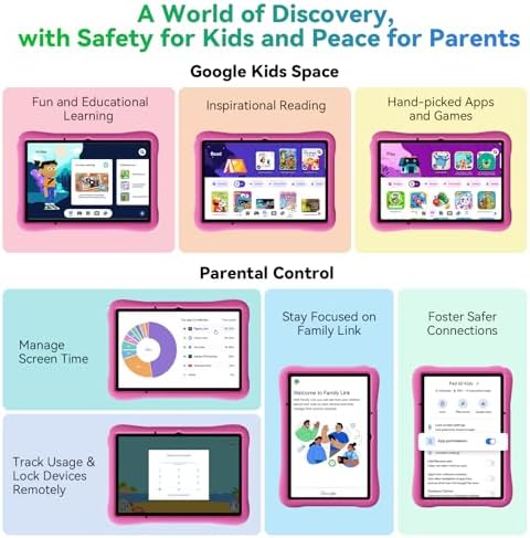 🌟【Parental Control System - Give Parents More Confidence When Handing Over a Tablet to Their Children】This OSCAL KIDS TABLETS come with built-in Google Kids Space, offering a rich library of kid-friendly content. It recommends age-appropriate learning content based on each child's profile. You can also download learning or entertainment apps based on your child's needs, giving them more space to use their tablet. The tablet's built-in parental controls allow parents to manage daily screen time, control app access, and filter content, fostering self-discipline in their children. The OSCAL Kids' tablet helps children explore safely while giving parents peace of mind.
