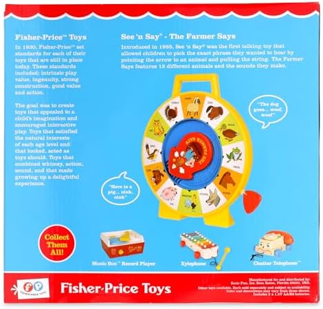 INTERACTIVE PLAY: With the See 'n Say Farmer Says animal wheel, Lots of Learning games can be played, as your child pulls the string to highlight a random farm animal. so with this interactive toy, your child can begin learning the noises they make