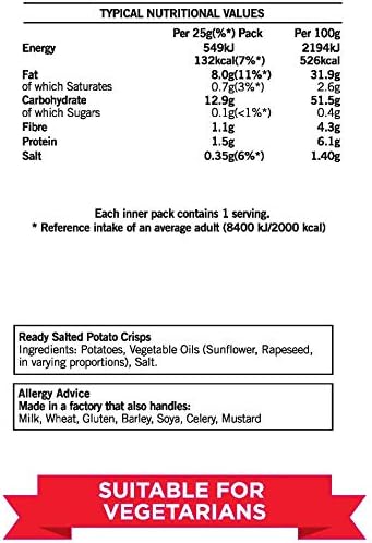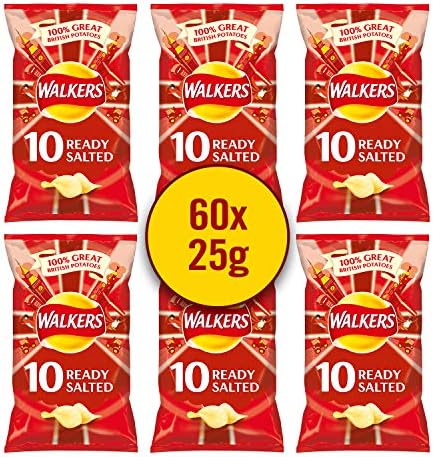 This box contains 60 single packs of Walkers ready salted crisps (25g)