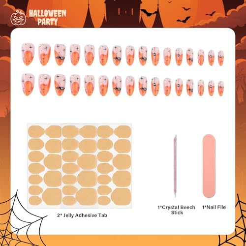What You Will Get: You will get 32 pcs Halloween Press on Nails, multiple sizes to better fit your nails! In addition, we will also provide you with 2 pcs jelly glue, 1pcs plastic stick, 1pcs nail file, 1pcs instruction. A wide variety of accessories will help you achieve your perfect Nail DIY!