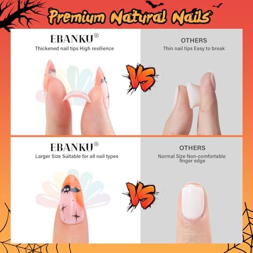 Eye-Catching Designs: Our products feature classic Halloween designs, in different colors and the latest styles, to help you stand out from the crowd. Our nail tips are free-build tips with a curve that fits the nail, making your fingers look longer.