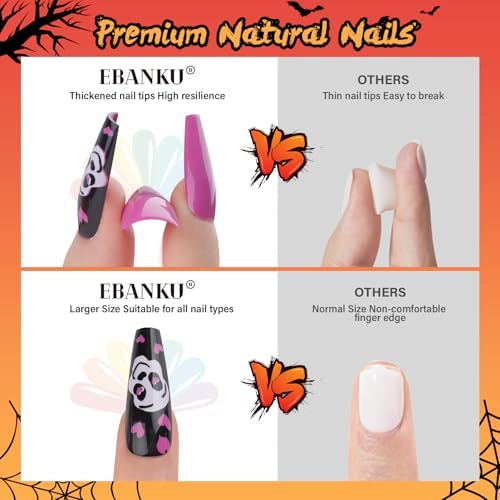 Eye-Catching Designs: Our products feature classic Halloween designs, in different colors and the latest styles, to help you stand out from the crowd. Our nail tips are free-build tips with a curve that fits the nail, making your fingers look longer.