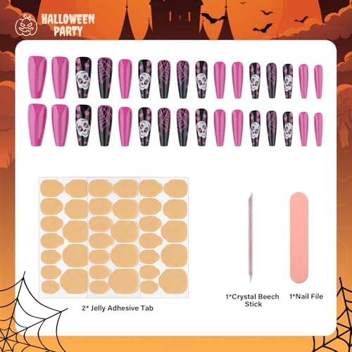 What You Will Get: You will get 32 pcs Halloween Press on Nails, multiple sizes to better fit your nails! In addition, we will also provide you with 2 pcs jelly glue, 1pcs plastic stick, 1pcs nail file, 1pcs instruction. A wide variety of accessories will help you achieve your perfect Nail DIY!