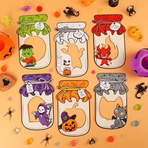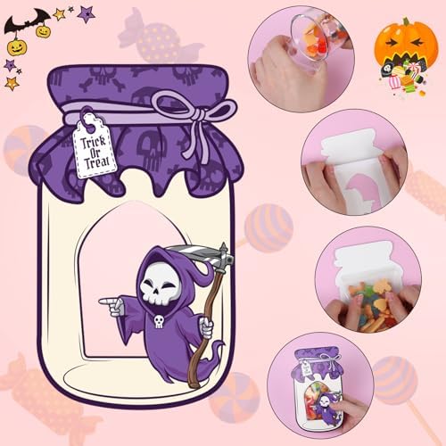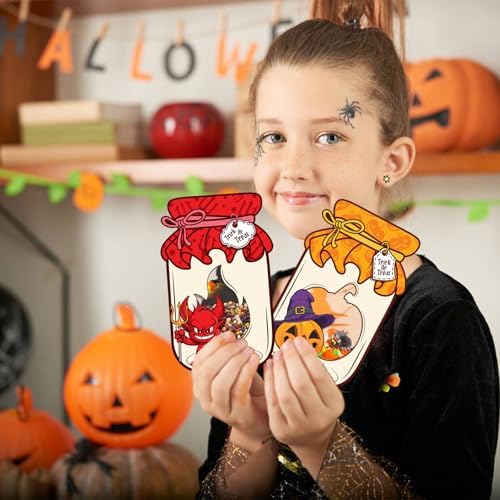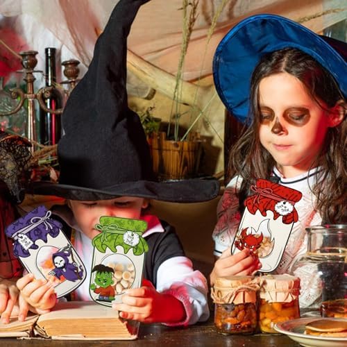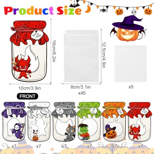 Quality Material: These Halloween mason jar shape cards are made of premium cardboard, and the clear candy bags are made of plastic, easy to carry and not break or tear