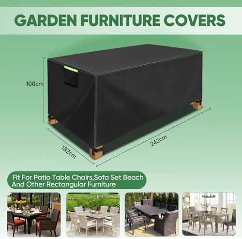 【Size】: The size of this product is 242x182x100cm, which is suitable for most furniture types, such as dining tables, rattan furniture, sofas, coffee tables, etc. It is recommended to measure the size of your furniture before purchasing so that the function of the furniture cover can be fully utilized.