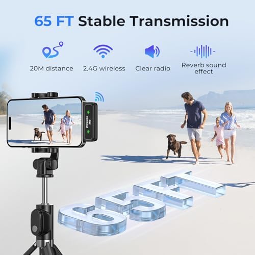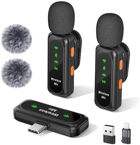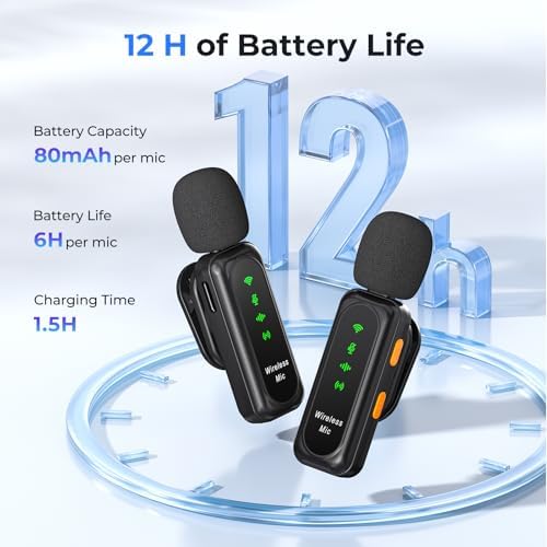 12 - Hour Total Battery & Simultaneous Charging: Comes with 2 transmitters (microphones), each transmitter equipped with rechargeable battery, providing up to 6 hours of continuous recording on a single charge. The unique design allows you to charge your phone while using the mic, eliminating downtime.