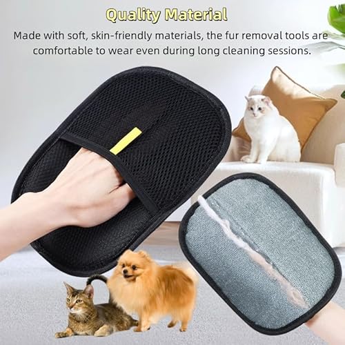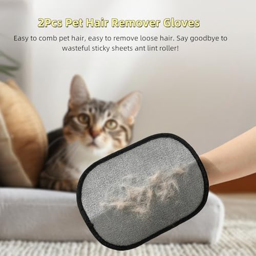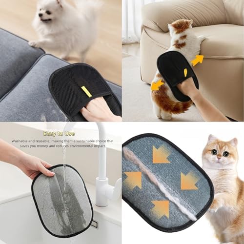 【Easy to Use】No more repetitive rolling or struggling to pick up stubborn debris! Comb back and forth, cat hair will automatically attach to the middle of the glove in sheets, just tear it off gently. These pet hair removal gloves are washable and reusable, making them a sustainable choice that saves you money and reduces environmental impact.