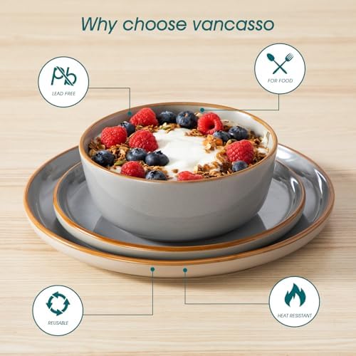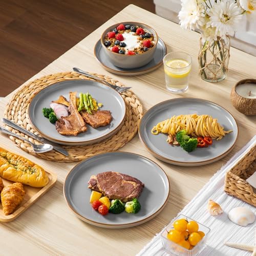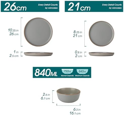 【Durable & Safe】Crafted from high-quality stoneware and fired at high temperatures, this ceramic dinnerware set offers excellent durability—resistant to stains, scratches, and oil. It’s microwave safe, dishwasher safe, and refrigerator safe for everyday convenience. The non-porous glaze remains smooth and stable, preventing corrosion from acidic foods or detergents.
