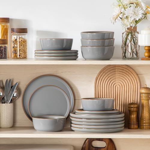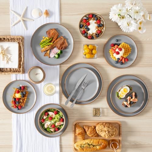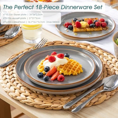 【Complete Service for 6】This 18-piece ceramic plates and bowls set includes 6 dinner plates(10.25in), 6 dessert plates(8.25in), 6 cereal bowls(6.35in). Perfect for everyday family meals, casual dining with friends, or hosting festive gatherings. Its versatile design complements any kitchen décor, making it an ideal plates and bowls set for 6.