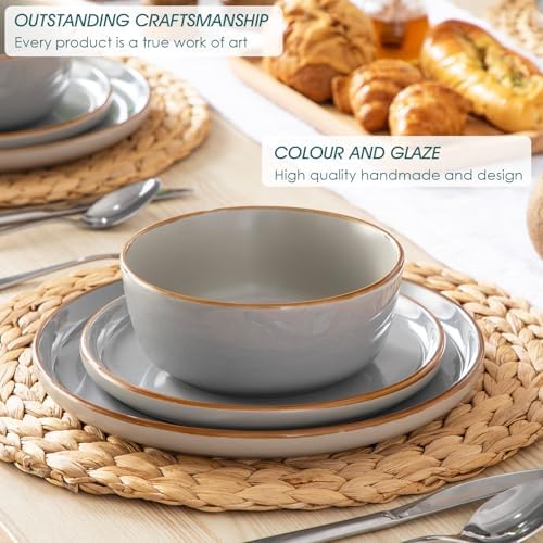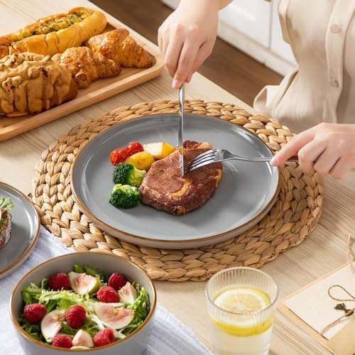 【Practical Design】The bowls feature smooth, curved rims designed for ergonomic comfort. Easy to hold and gentle on the lips, they enhance your dining experience with every use. The well-balanced shape helps prevent spills, making this everyday dinner set both functional and stylish for family dining.