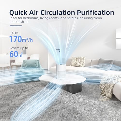 Efficient Air Circulation: The CADR (Clean Air Delivery Rate) of this air purifier is 170m³/h, which can complete a full air circulation in a room of 20㎡ every 17 minutes, allowing 3 to 4 purification cycles per hour to ensure that the indoor air is always fresh and clean. Whether it is a study or a bedroom, you will enjoy a clean breathing experience and improve the quality of life.
